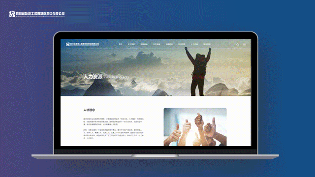 2、页面整体视觉设计以集团VI视觉识别体系中的logo元素为切入点,以“山 是大地的筋骨 水 是大地的血脉”为核心理念,采用了灵动的水波纹流动设计形式和山为背景的元素,旨在呈现一个高度统一的品牌形象。